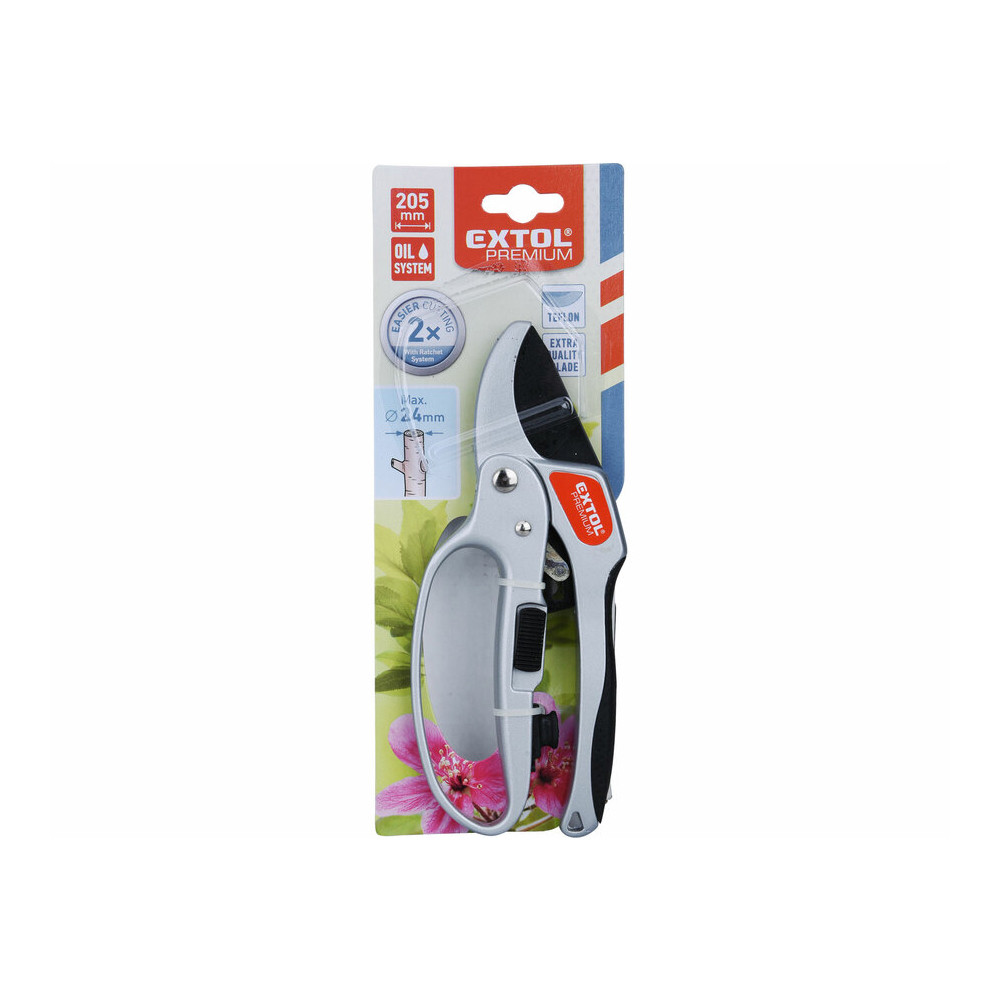 Extol Premium metszőolló, mellévágó, racsnis, 205mm, tapadásmentes acél vágóél, max. 24 mm vágási