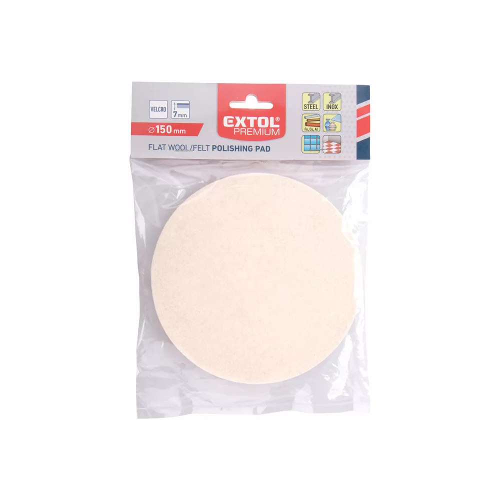 Extol Premium polírkorong, fehér, báránybőr (gyapjú); 150 mm, 7 mm vastag, tépőzáras