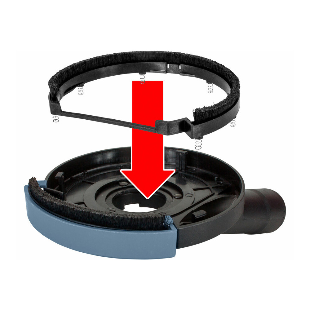 Az optimális porvisszatartás és a csiszolási felületre gyakorolt ellenőrzött szerszámnyomás érdekében a kefekoszorú rugókra van szerelve