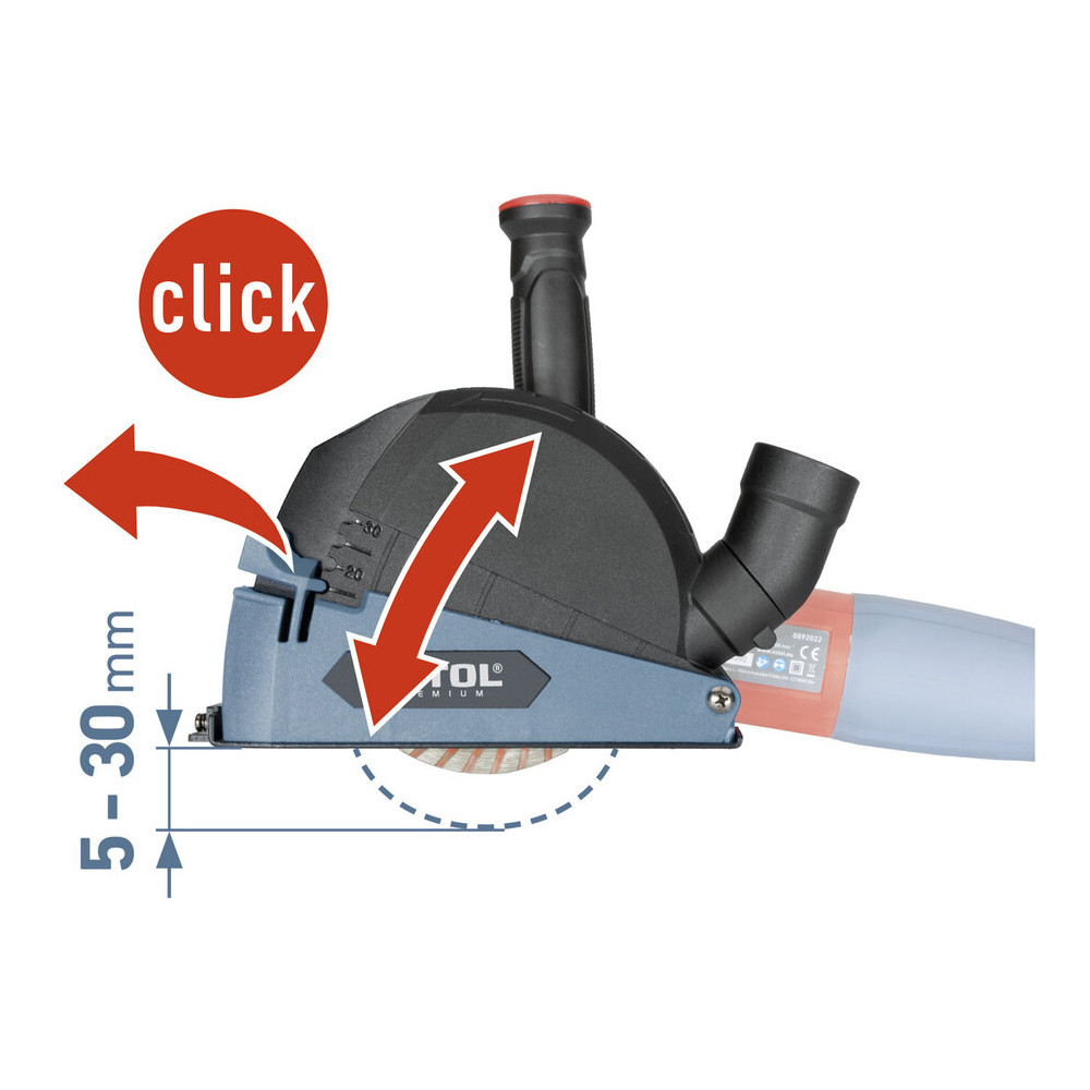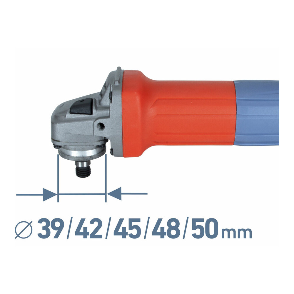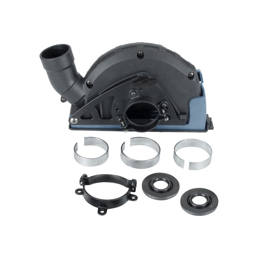 Az állítható rögzítőhüvely (gallér) segítségével, távtartókkal és központosító alátétekkel kombinálva ez a porelszívó adapter minden 125 mm-es sarokcsiszoló típusra felszerelhető