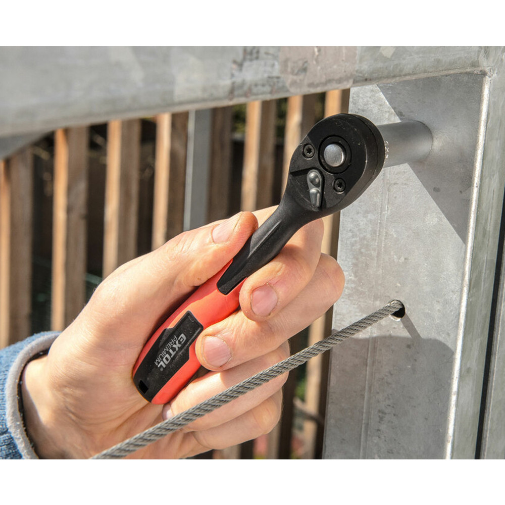 Extol Premium racsnis hajtókar, CV., 72 fog, hajlított szár, csúszásgátló TPR markolat; 1/2", 250mm