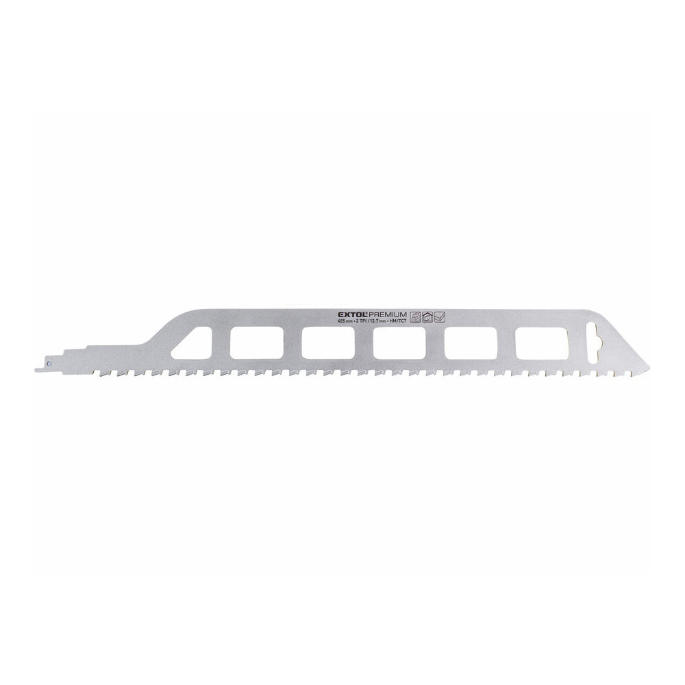 Extol Premium szablyafűrészlap 1db, Bosch befogás, HM/TCT fogak, 455 mm, 2TPI, gázbetonhoz, durva