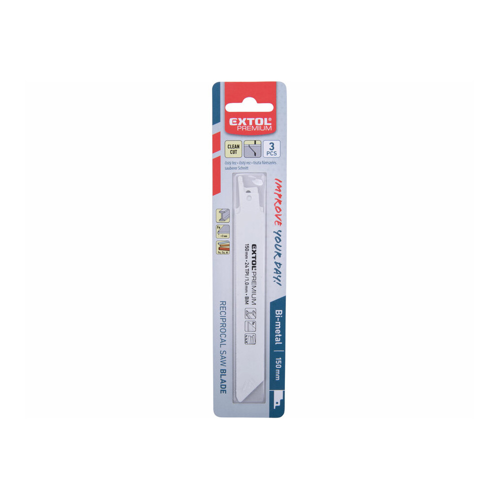 Extol Premium szablyafűrészlap készlet, 3db, Bosch befogás, 150 mm, 24T, Bimetal, fém anyagokhoz,