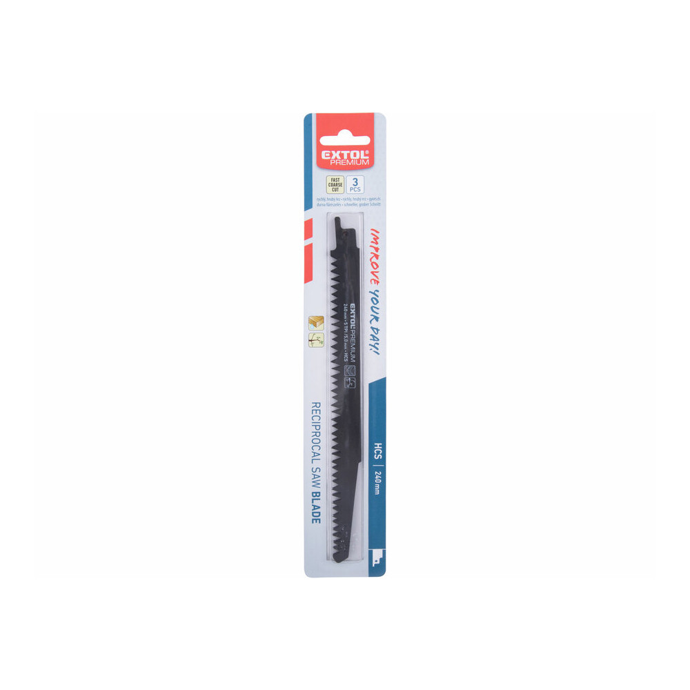 Extol Premium szablyafűrészlap készlet, 3db, Bosch befogás, 240 mm, 5T, HCS, fához