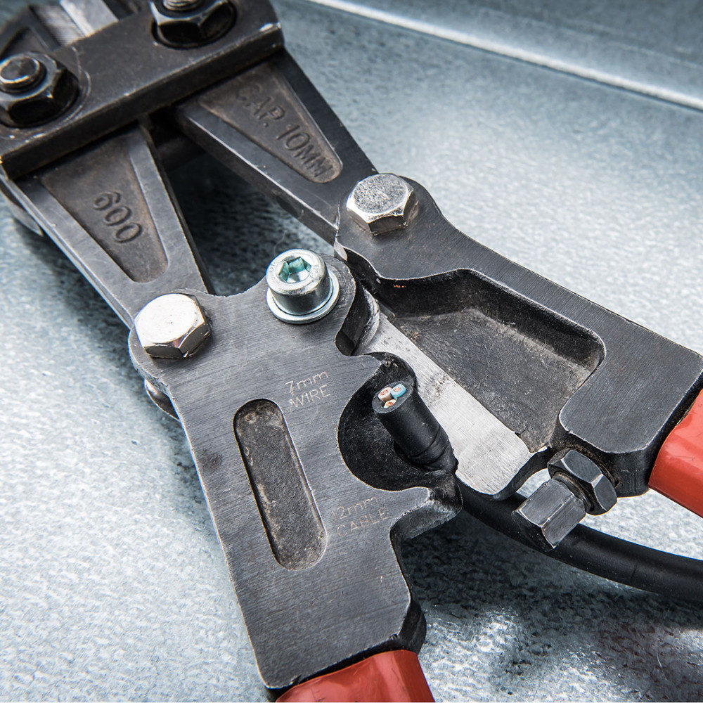 Fortum erővágó (csapszeg, sodrony, kábel) 61CrV4,HRC 55-60; 450mm/18", 8mm csapszeg, 5mm sodrony,