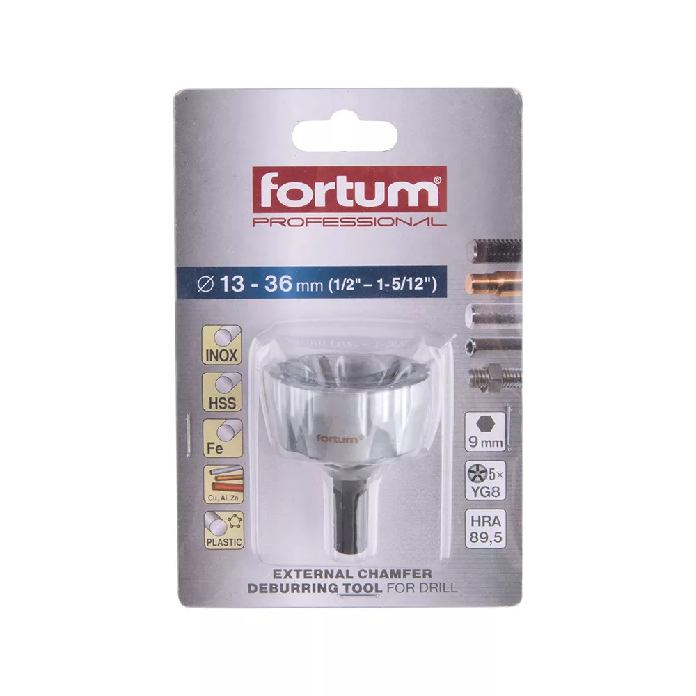 Fortum sorjátlanító BIT (sorjázó adapter), 13-36 mm, fúrógépbe fogható, 9 mm