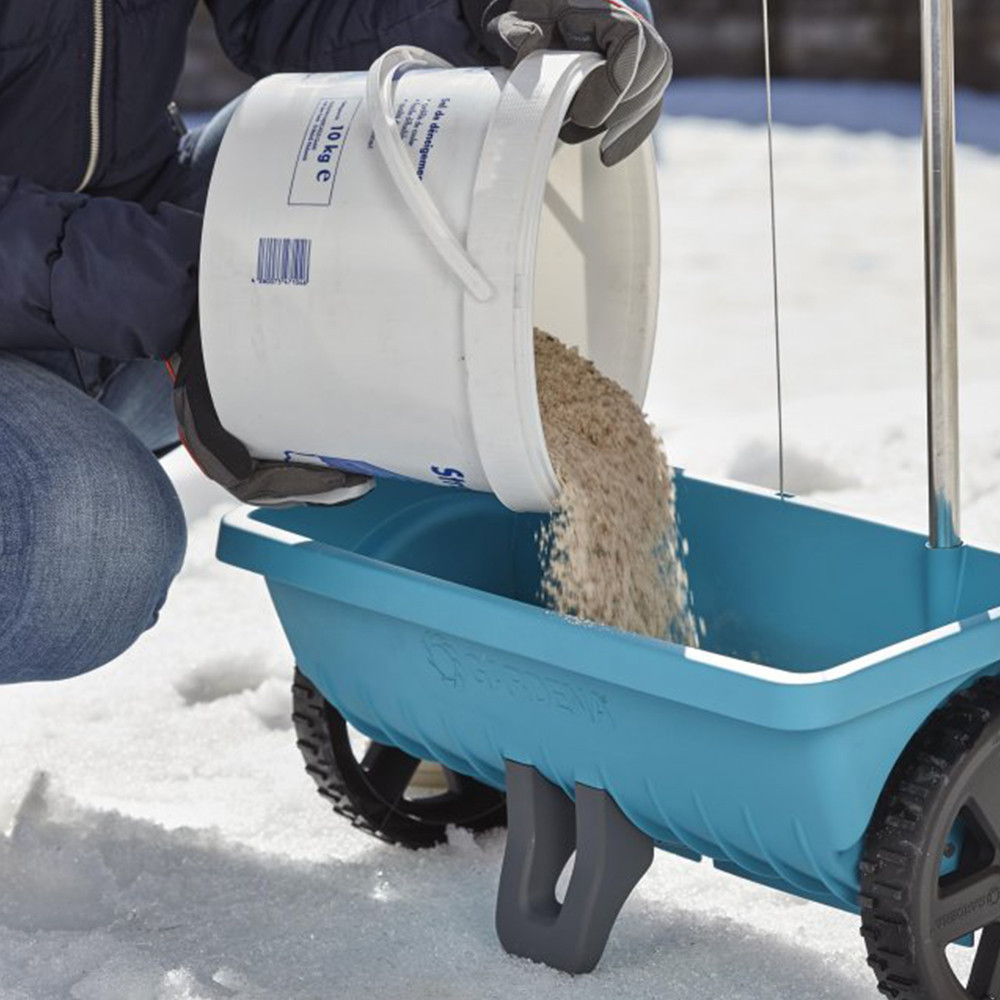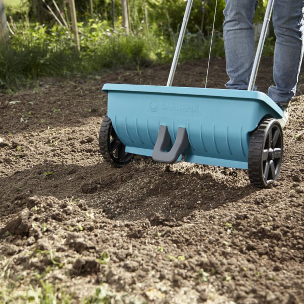 A Szórókocsi L különféle szemcseátmérőjű anyagokkal használható: műtrágyával, magvakkal, granulátumokkal, homokkal vagy útszóró sóval