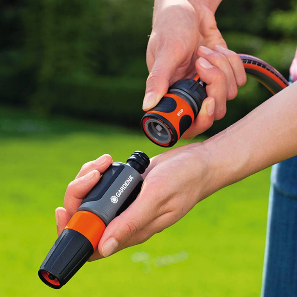 A Gardena vízmegállító a tömlő végéhez csatlakoztatható