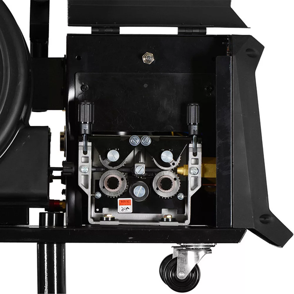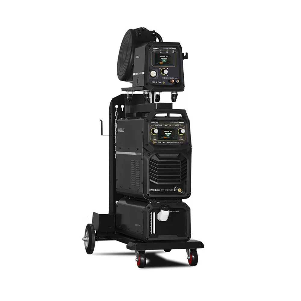 Szinergikus vezérlésű MIG/MAG hegesztő áramforrás hordozható huzaltoló egységgel