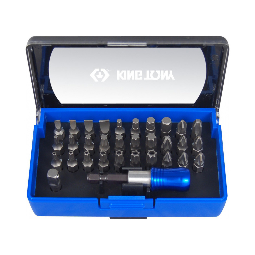 King Tony bitkészlet 1025S: 3-4-5-6 1025P: PH1-2xPH2-PZ3 1025Z: PZ1-2xPZ2-PZ3 1025T: T10-T15-T20-T25-T27-T30-T40 1025H: H3-H4-H5-H6 1025U: T10H-T15H-T20H-T25H-T27H-T30H-T40H 7702-25 753-63 Műanyag doboz