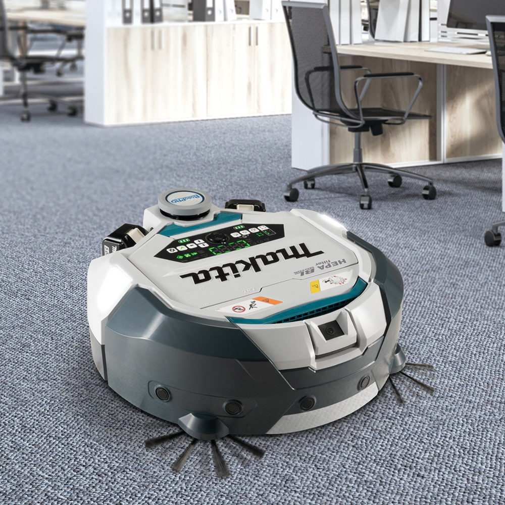 A Makita DRC300Z ipari robotporszívó nagy teljesítményű megoldás nagy alapterületű helyiségek por- és szennyeződés mentesítésére - intelligens navigációval, erőteljes szívóerővel és akár 600 m²-es takarítási kapacitással!