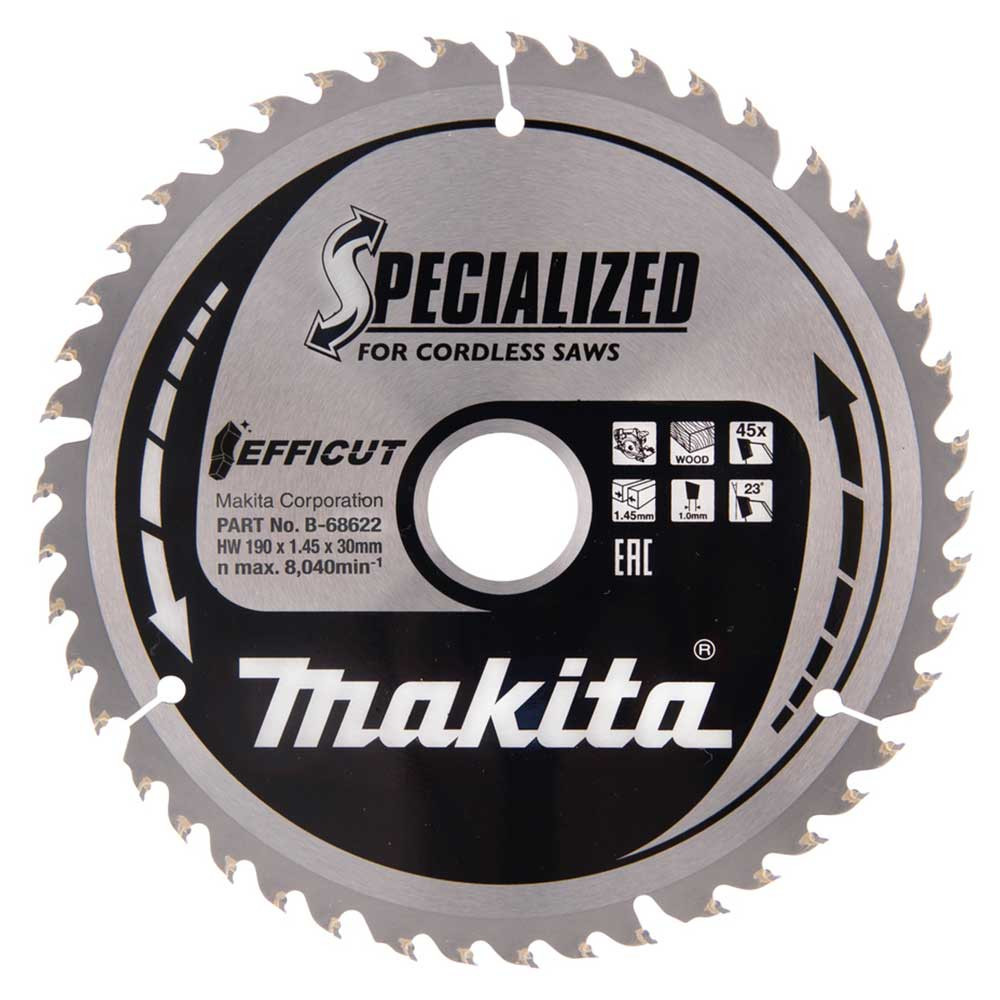 Makita EFFICUT körfűrészlap akkus géppel, fához 190x30x1,45mm 45 fog