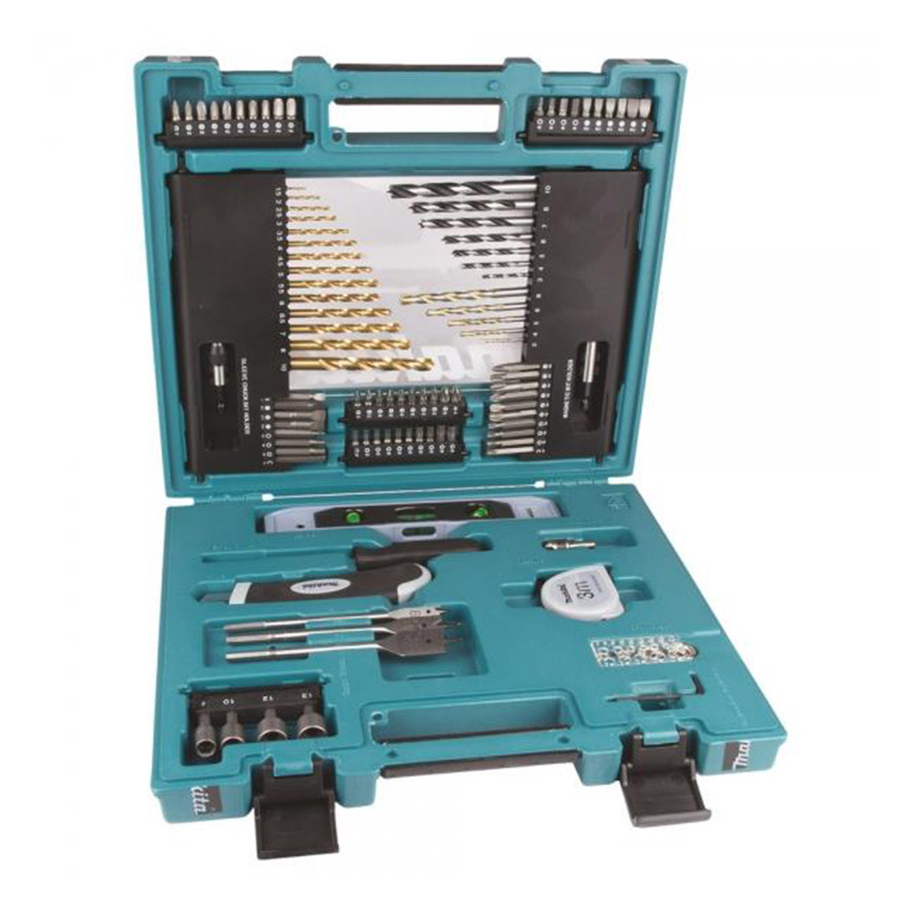 4 db bitdugókulcs 8 - 13 mm 2 db Bittartó 1 db tárpengés kés18mm- es pengével 1 db 3m-es mérőszalag 1 db kézi csavarhúzó200mm bitbefogású 1 db vízmérték20 cm 1 db fúrószárra erősíthető mélységütköző
