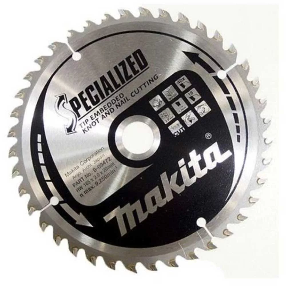 Makita körfűrészlap szöges és csomós fáhóz 165x20x2mm 40 fog