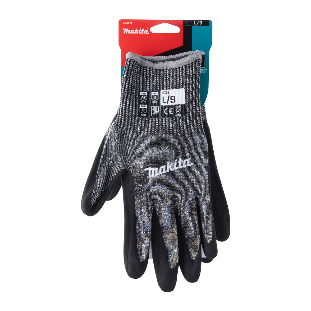 • 1 db Makita  munkavédelmi kesztyű mártott NITRIL bevonattal 7-es vágásbiztos (L) 9