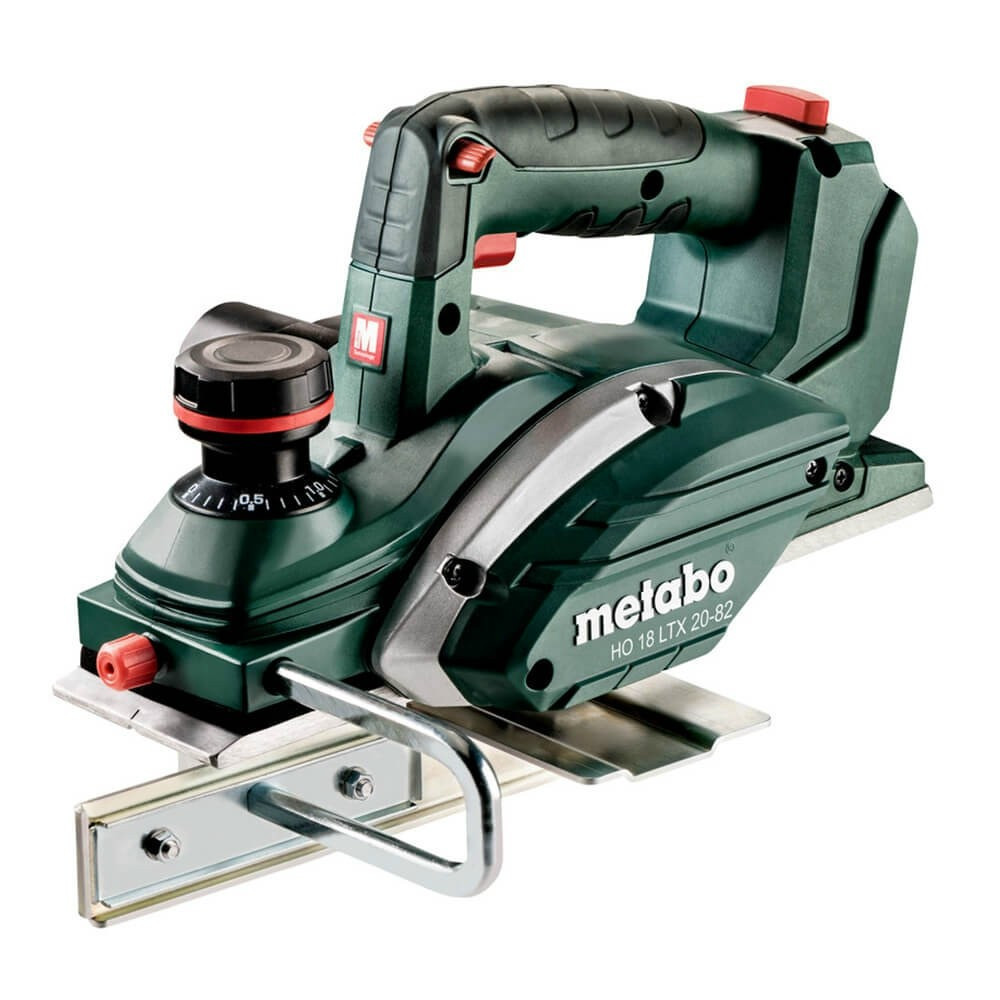 Metabo HO 18 LTX 20-82 akkus gyalugép Keményfém fordítható gyalukések Párhuzamvezetők Beállító műszer Forgácskidobó adapter Szövet porzsák Akkumulátor és töltő nélkül Kartondoboz