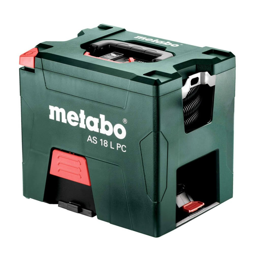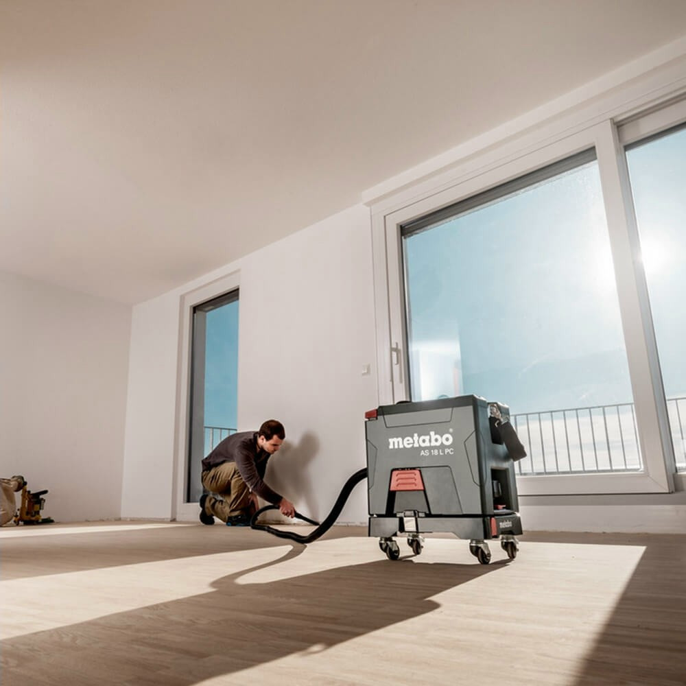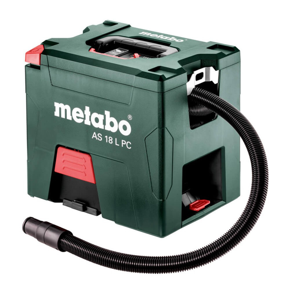 Metabo AS 18 L PC akkus porszívóSzívótömlő (átmérő: 27 mm / 3,0 m)Fátyolszövet porzsákSzívófej (120 mm széles)Szívófej hézagokhozHordszíjAkkumulátor és töltő nélkülKartondoboz