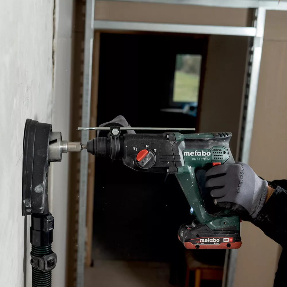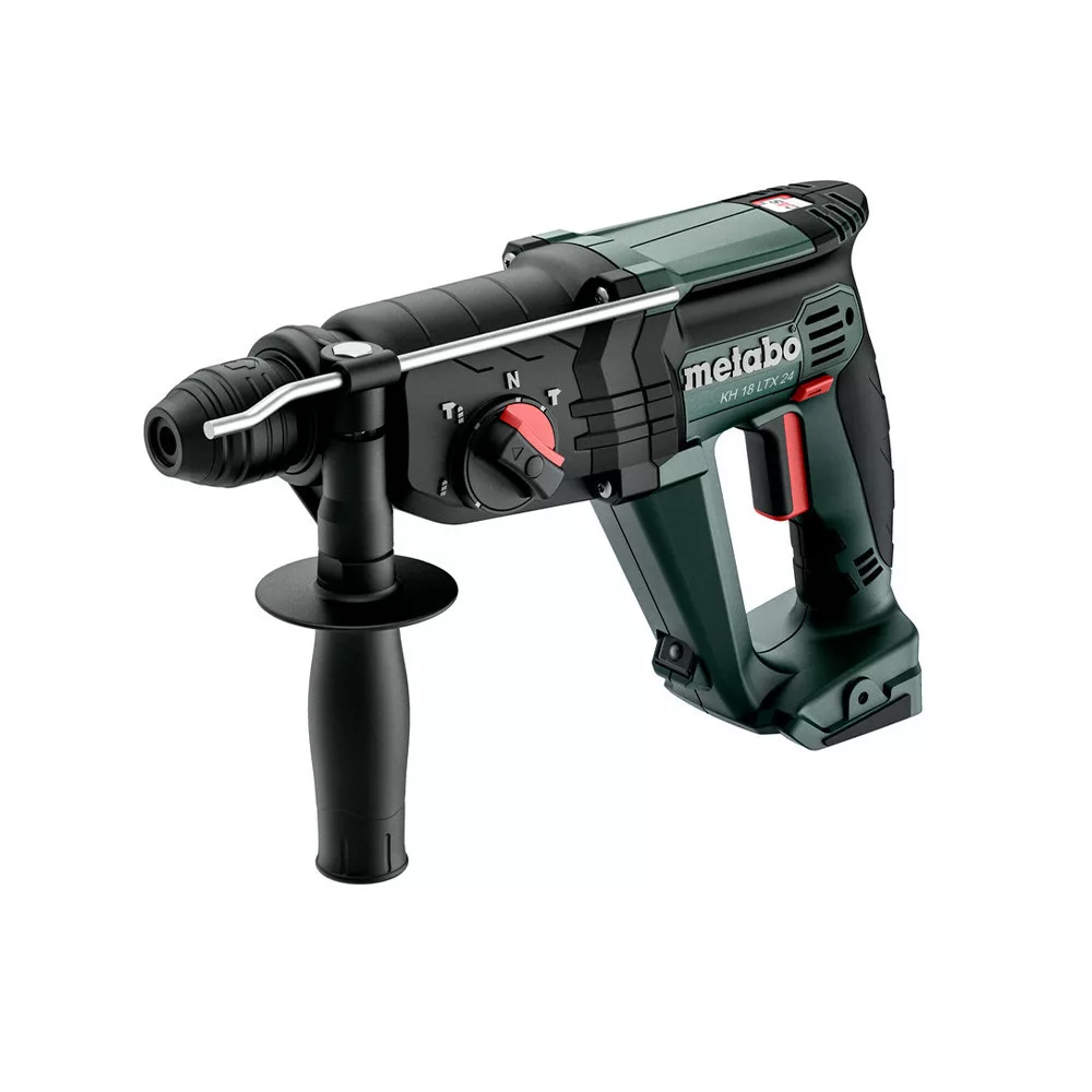 Metabo KH 18 LTX 24 akkus fúrókalapács Kiegészítő fogantyú Fúrásmélység-ütköző Akkumulátor és töltő nélkül A készülék gyártói csomagolás nélkül, fóliában kerül kiszállításra a kedvezőbb ár érdekében Ettől függetlenül vadonatúj, teljes gyártói garanciával rendelkező termék