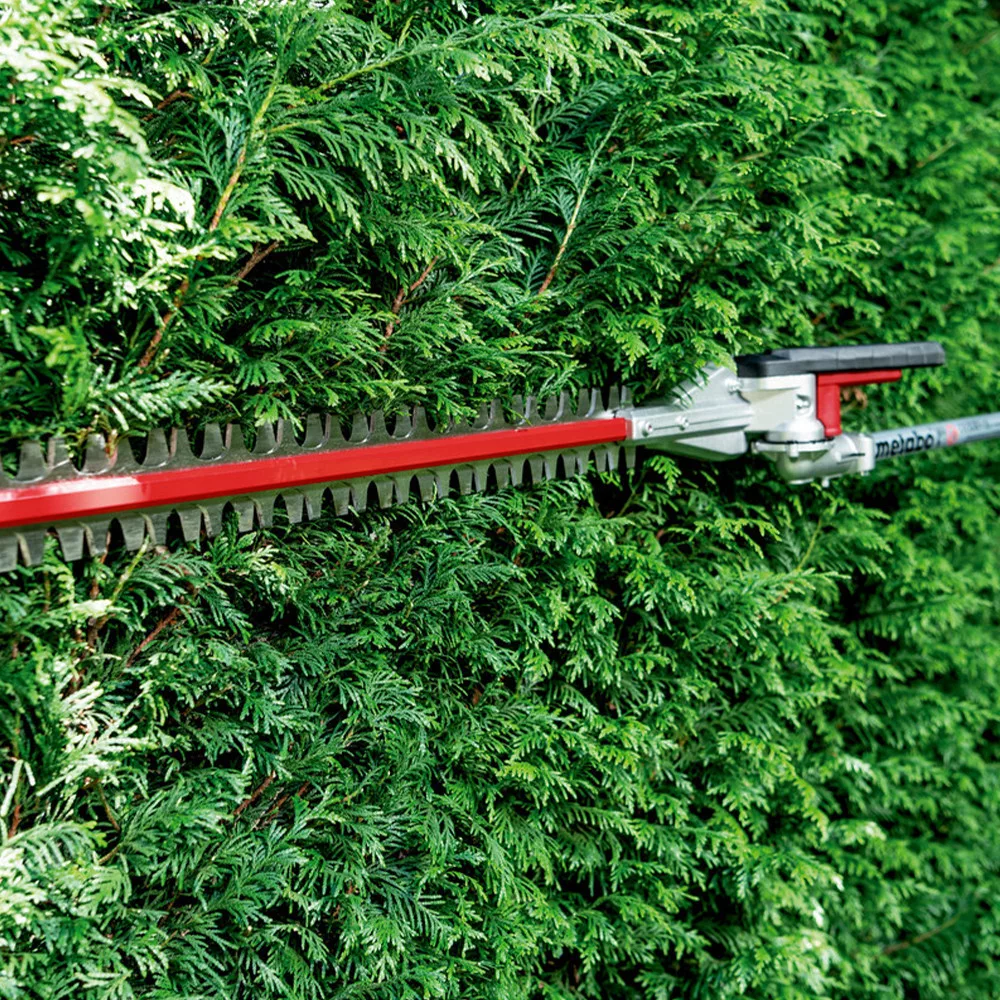 Magasra nőtt sövények és bokrok vágása a Metabo multifunkciós rendszer sövényvágó adapterével, a rendszer sok kerti munkánál az "all in one" megoldást kínálja