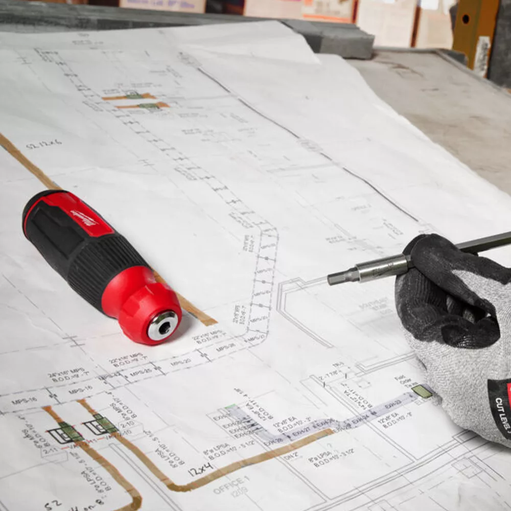 Fogantyúba épített bittároló a bit gyors és egyszerű eléréséhez. Könnyen észlelhető ha egy bit hiányzik. Eltávolítható bittartó a szűkebb helyek eléréséhez. ¼″ befogású bittartó lehetővé teszi az elektromos kéziszerszámokban is történő használatát. Lézergravírozott méretezés a biteken, a könnyebb azonosítás érdekében.