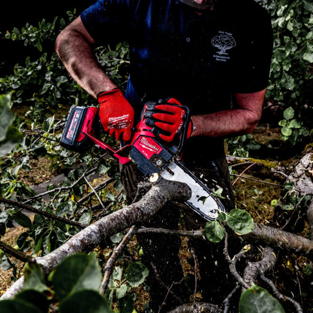 Az M18 FUEL HATCHET ágvágó lánfűrész kiemelkedő teljesítményt és nyomatékot biztosít a keményfa vágáshoz anélkül ,hog yelakadna. Úgy tervezték ,hogy mefeleljen a tájfenntartó a szakemberek ergonómiai,teljesítmény- és tartóssági igényeinek. Akár 180 vágás 10 ×10 cm- es cédrusban teljes M18 HIGH OUTPUT 5,5 Ah akkumulátortöltéssel a kiemelkedő termelékenység érdekében. Automatikus olajozás a könnyebb használathoz és a megfelelő lánckenéshez. Belső tárhely a láncfűrész gyertyakulcsnak.