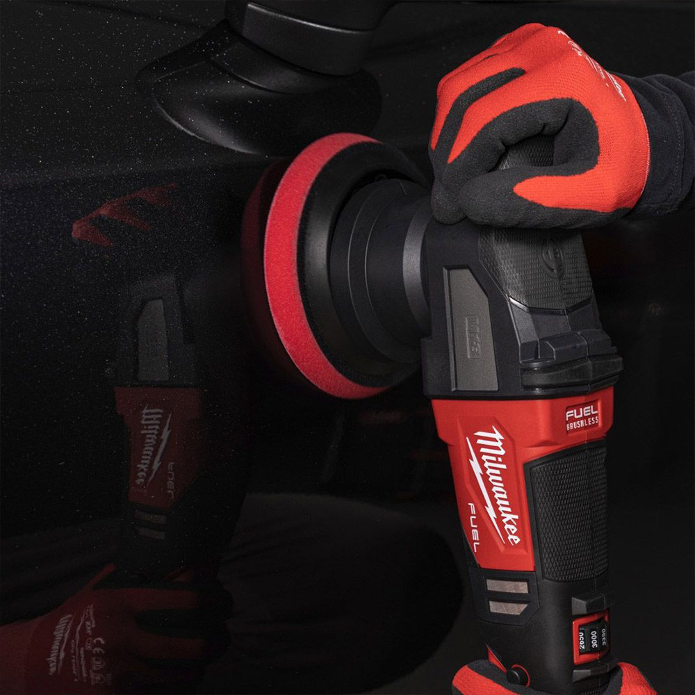 A teljes polírozás és nagyobb korrekciós munkák elvégzése érdekében ugyanolyan teljesítményt nyújt, mint a vezetékes excenter polírozók 8 fokozat beállítás a maximális kontroll és a legjobb felületképzési eredmény érdekében 15 mm-es rezgőfunkció a gyors és hatékony polírozáshoz, hologrammentes felülettel Nagy, ergonomikus elülső markolatrész rátéttel a könnyű és kényelmes kezelés érdekében, különösen a szerszámmal függőlegesen végzett munka során A reteszelő funkció hosszabb ideig tartó polírozás esetén kényelmesebb és kevésbé megerőltető munkát biztosít 90°-ban elforgatott akkumulátor 50 mm-nél nagyobb távolsággal, hogy megakadályozza a festékkel való érintkezést, és lehetővé tegye a szerszám vízszintes vagy függőleges helyzetben történő tárolását Feszültség alatti biztonsági relé funkció az automatikus indítás megakadályozására Kivehető porvédő a törmelék bejutásának megakadályozására, meghosszabbítva a motor élettartamát FUEL™ platformunk DNS-e újradefiniálja a vezeték nélküli technológia egyensúlyát. A MILWAUKEE® POWERSTATE™ szénkefe nélküli motor, REDLITHIUM™ akkumulátor és REDLINK PLUS™ intelligens elektronika páratlan teljesítményt, üzemidőt és tartósságot biztosít. Rugalmas akkumulátor rendszerrel - MILWAUKEE® M18™ akkumulátorokkal működik