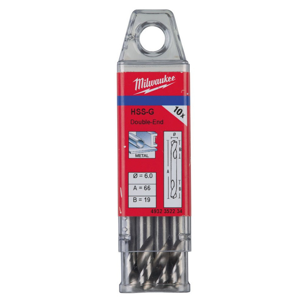 Milwaukee HSS-G kétvégű fémfúrószár 6x19/66mm (10db)