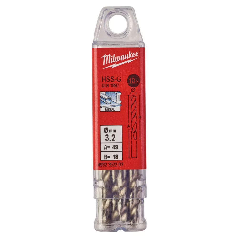 10 db Milwaukee HSS-G fémfúrószár 3,2mm