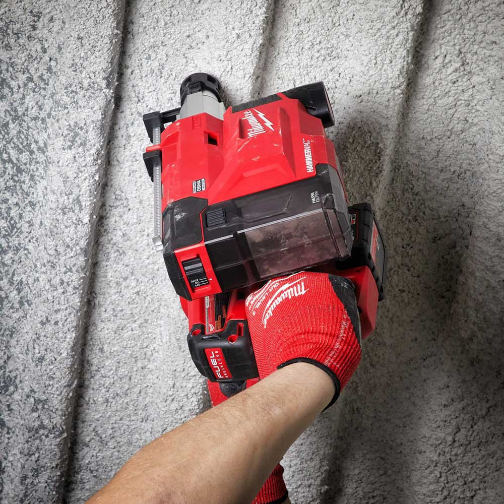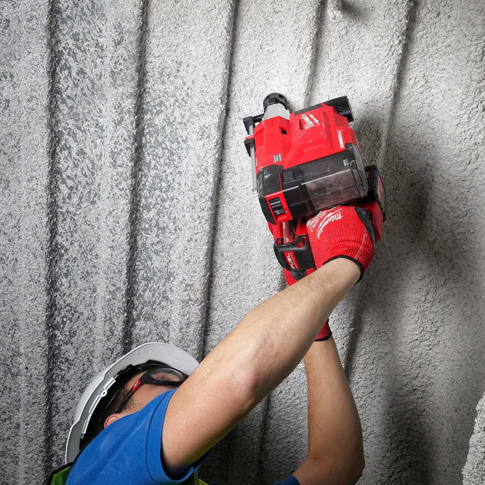A teleszkópos fúvókának köszönhetően, akár 210 mm hosszú SDS-plus fúróval is képes működni