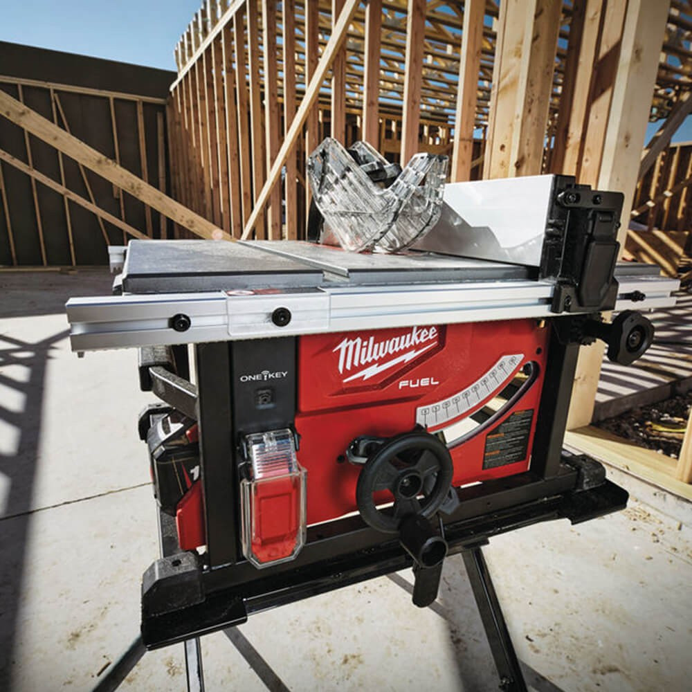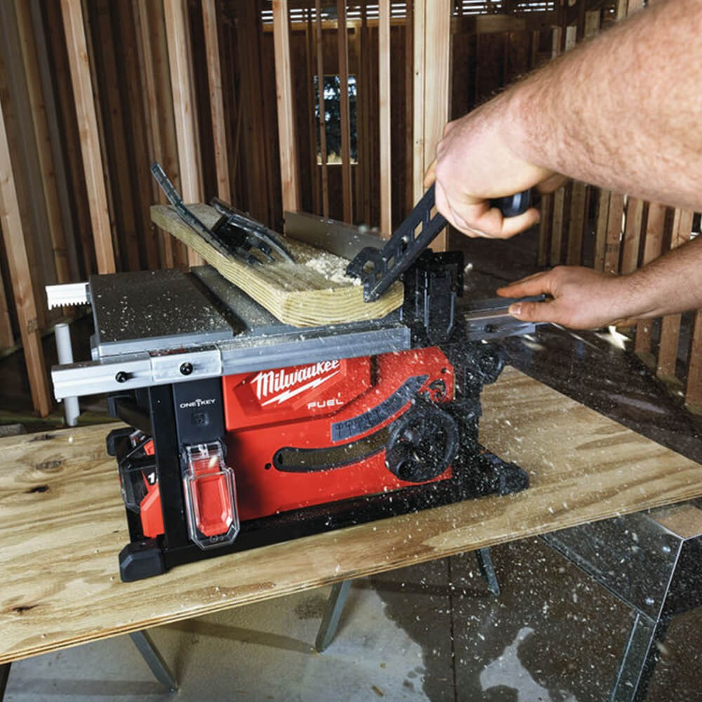 Az ONE-KEY™ M18 FUEL™ asztali körfűrész teljesítményének köszönhetően ugyanolyan adagolási sebességgel képes vágni, mint egy azonos kategóriájú vezetékes fűrész, 12.0 Ah-s akkumulátorral 190 méter 19 mm-es OSB lapot képes átvágni egy akkumulátor töltéssel