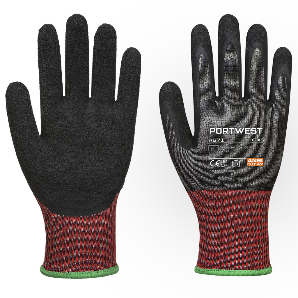 Portwest A671 CT200 AHR13 Latex vágásbiztos kesztyű Fekete/Piros - XXL