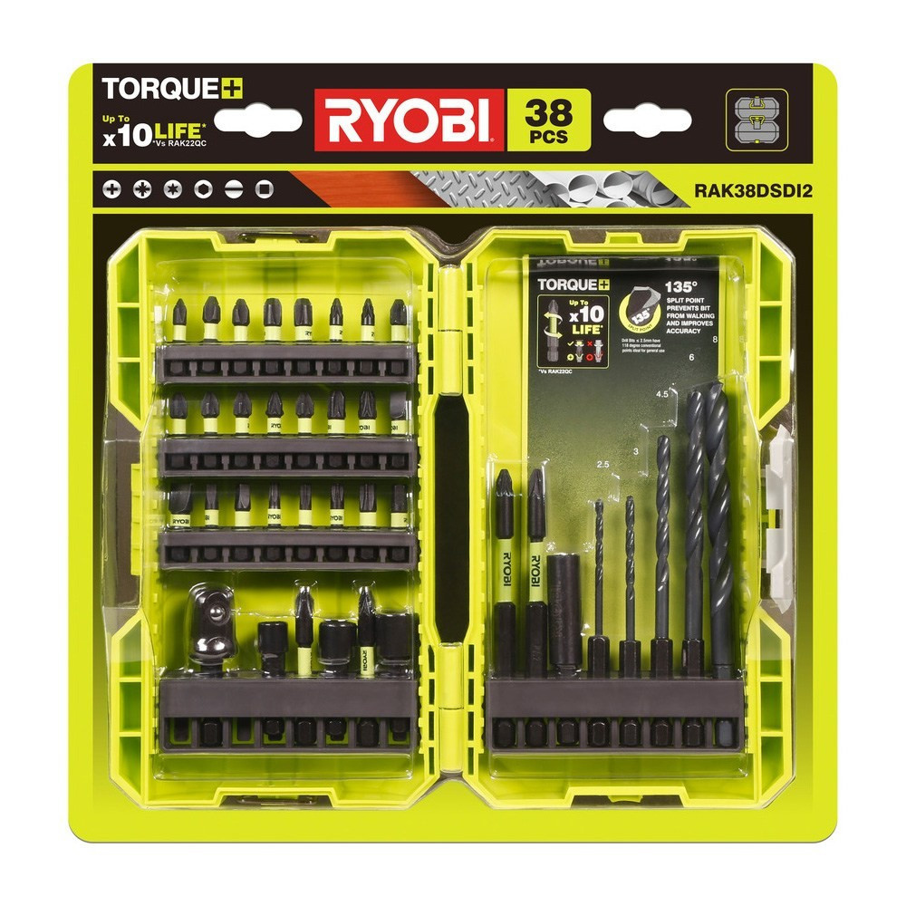 Ryobi RAK38DSDI2 vegyes fúró- és csavarozókészlet tartalma: