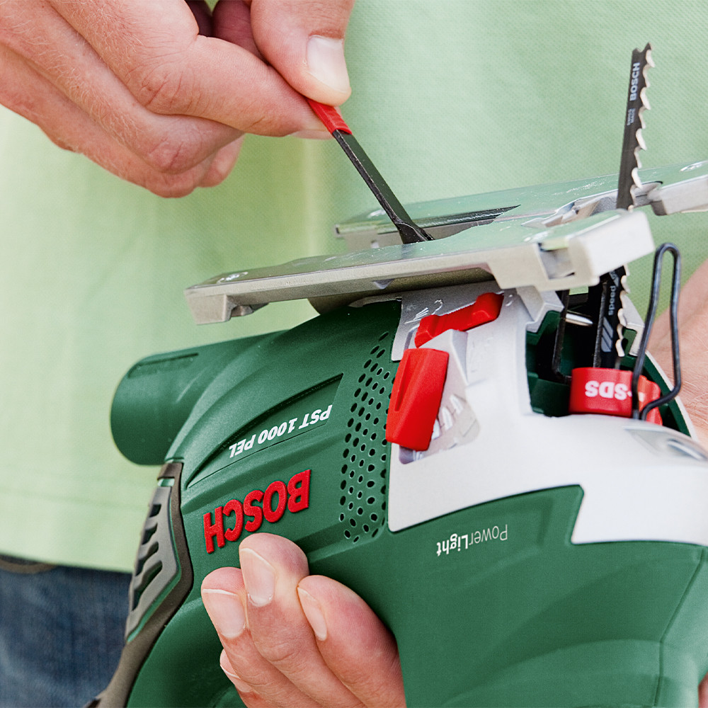 A Bosch SDS-rendszer biztosítja a könnyű és biztonságos másodpercnyi gyorsaságú fűrészlapcserét – szerszám nélkül