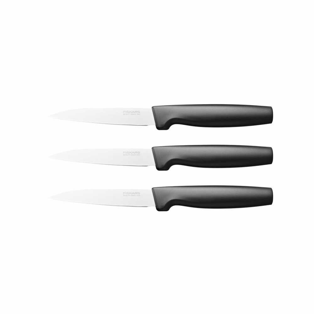 3 sokoldalú kést tartalmaz, amelyeket kényelmes használni és kezelniIdeális gyümölcsök és zöldségek hámozásához és vágásáhozTartós, japán rozsdamentes acél pengeA nagyobb ujjvédő kényelmes, biztonságos fogást biztosítÉlezése a Fiskars Roll-Sharp késélezővel ajánlottMosogatógépben moshatóHRC 52