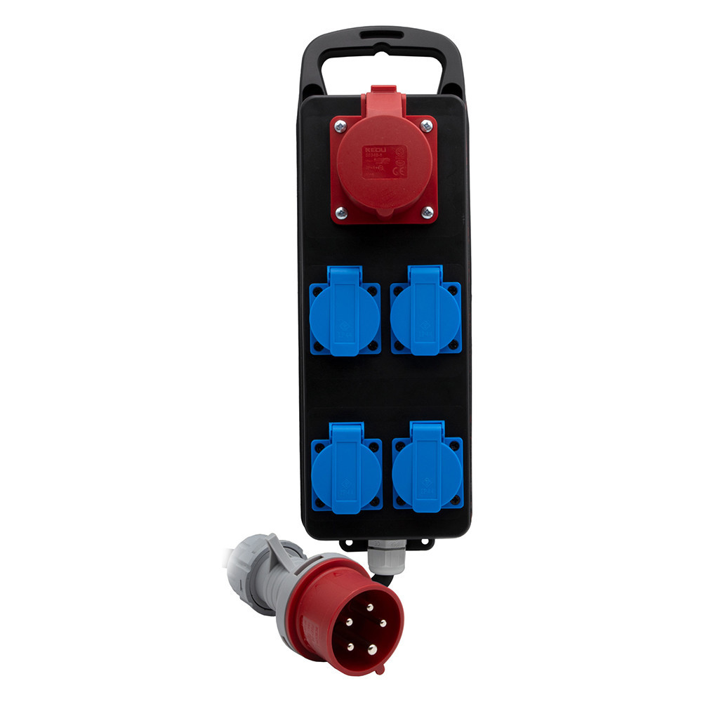 1 db 5 pólusú, 400V/16A (IP44) CEE csatlakozóaljzat.