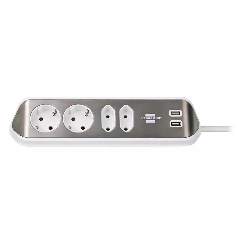 A kompakt, rendkívül törésálló műanyagból és kiváló minőségű rozsdamentes acél felületből készült brennenstuhlestilo sarokdobozcsík rendet teremt otthonában. Az univerzálisan alkalmazható aljzatkapcsoló csík speciális ragasztóbetétek segítségével egyszerűen rögzíthető konyhai aljzatkapcsoló csíkként a munkalapra vagy asztali aljzatkapcsoló csíkként a munkahelyre. A konyhai vagy asztali aljzatszalag vízszintesen és függőlegesen is rögzíthető. A következő jellemzőkkel is lenyűgöző: