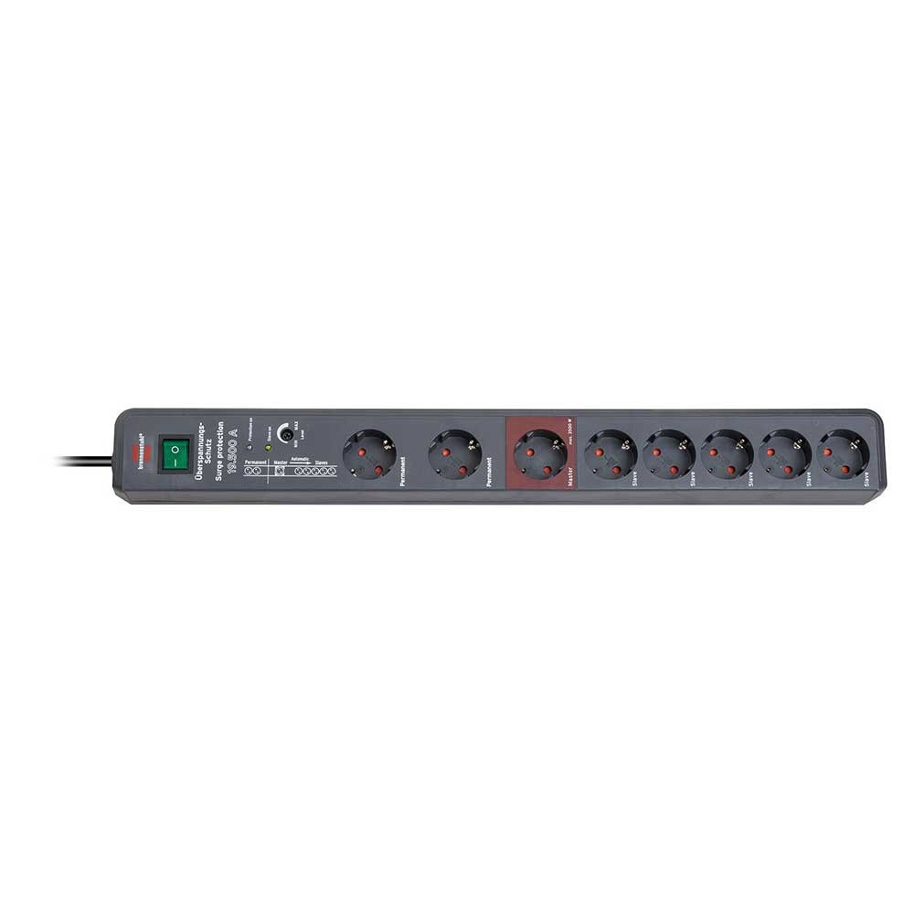 A Brennenstuhl Secure-Tec 8er többszörös dugaljcsíkja antracit színben és 3 méteres kábellel minden területen lenyűgöz minőségével és biztonságával. A készülék praktikus automatikus kapcsolási rendszerrel rendelkezik, Main Follow funkcióval. A főkészülék (pl. számítógép) az automatikus vezérlésbe bevonhatja a követő eszközöket (pl. monitor, hangrendszer, nyomtató, szkenner stb.). A főegység be-/kikapcsolójával (a piros főaljzatba dugva) az összes egység (a következő aljzatokban) automatikusan be- és kikapcsolható. Nemcsak a véletlen érintés elleni fokozott védelemmel rendelkezik, hanem a következő tulajdonságokkal is lenyűgöz: