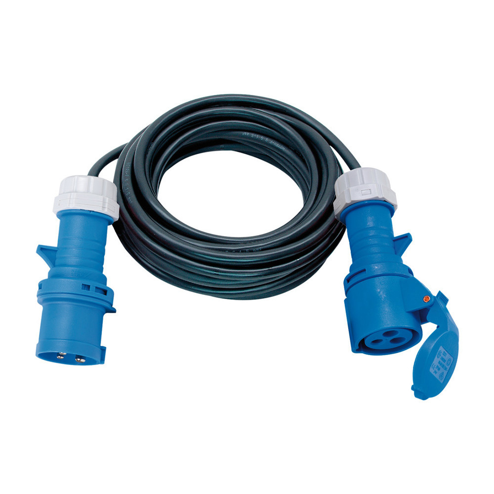 Különeges kábel CEE-dugasszal és CEE csatlakozó aljzattal, zárósapkával.