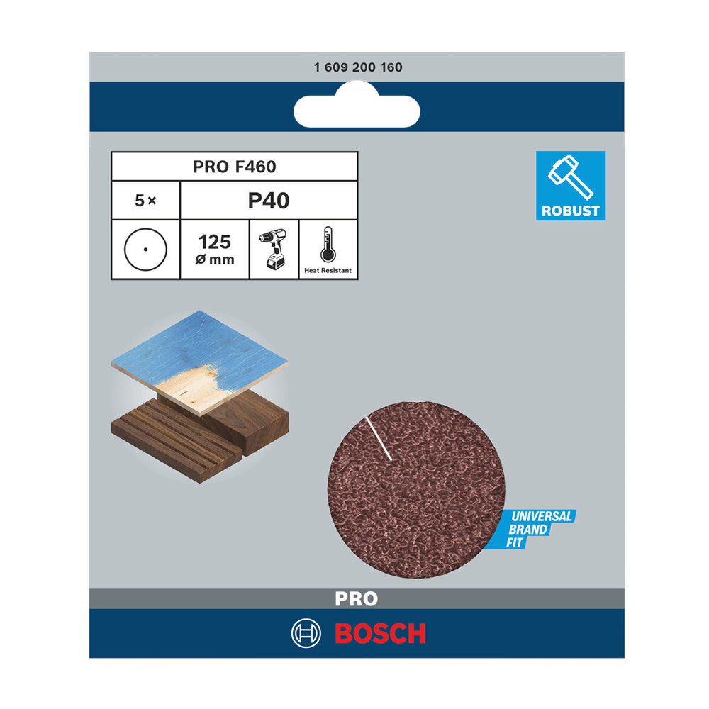 Bosch PRO F460 csiszolópapír, 125 mm, szemcseméret: G40 5 db, fához és festékhez