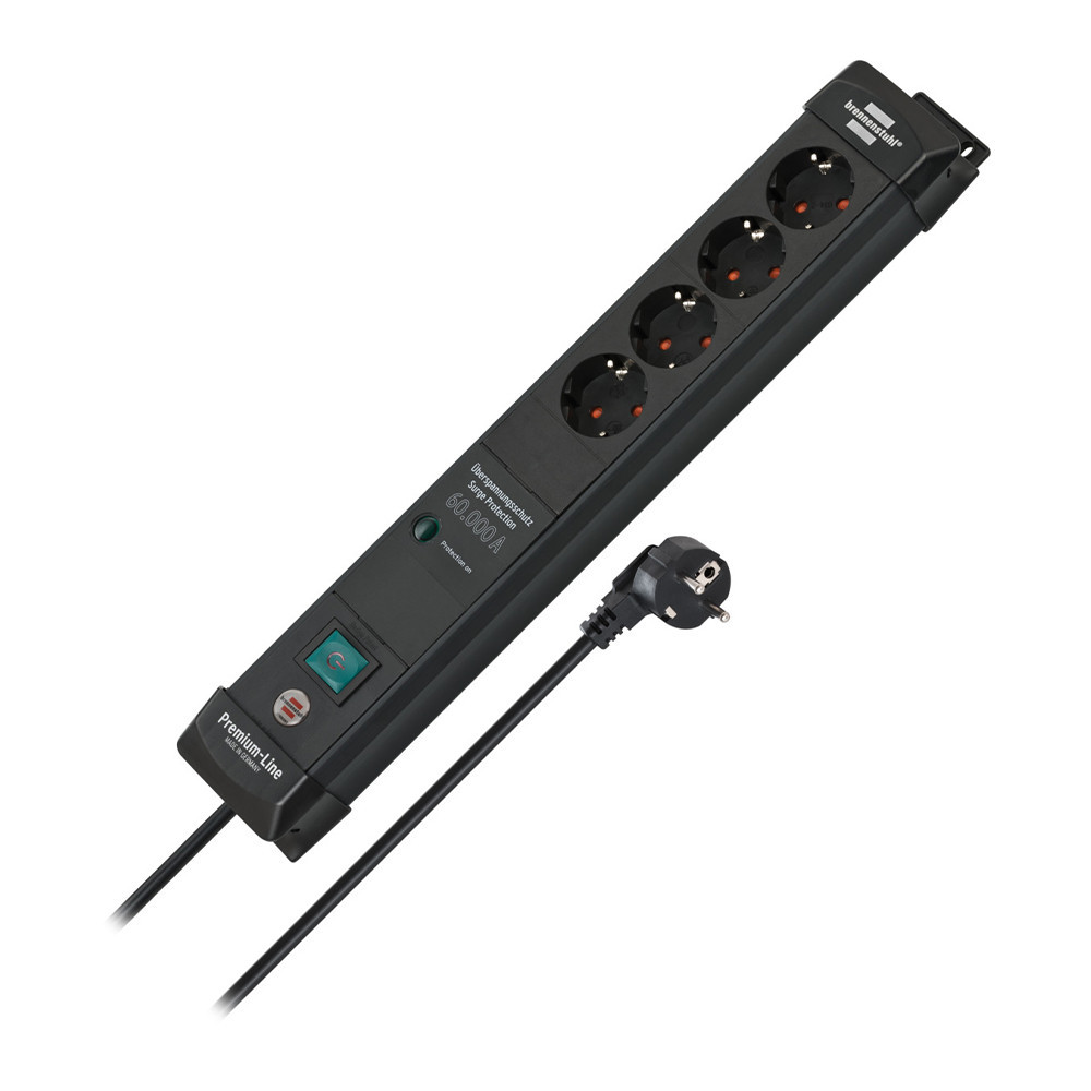 Brennenstuhl Premium-Line 60.000A túlfeszültség-védelmi aljzatszalag 4-szeres fekete 1,8m 3G1,5
