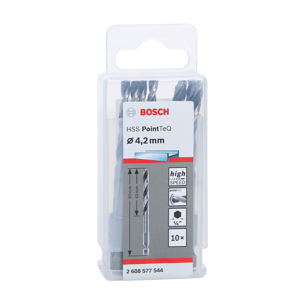 • 10 db Bosch HSS PointTeQ fémfúró 4,2 x 43 x 83 mm, 1/4" HEX befogással