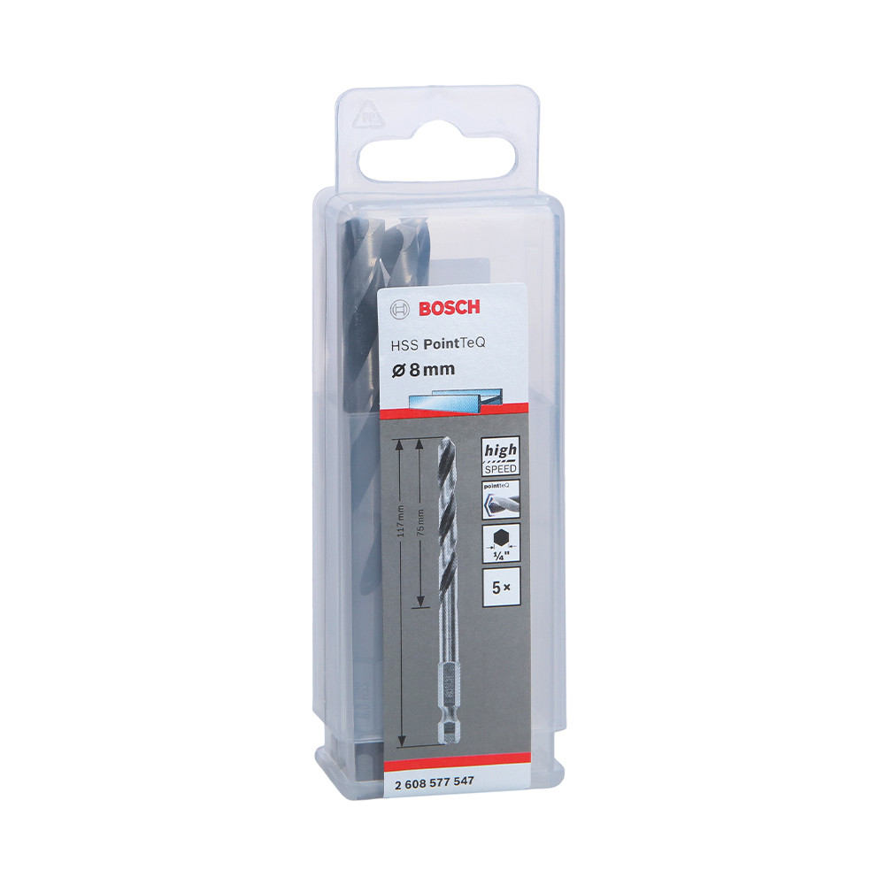 • 5 db Bosch HSS PointTeQ fémfúró 8 x 75 x 117 mm, 1/4" HEX befogással