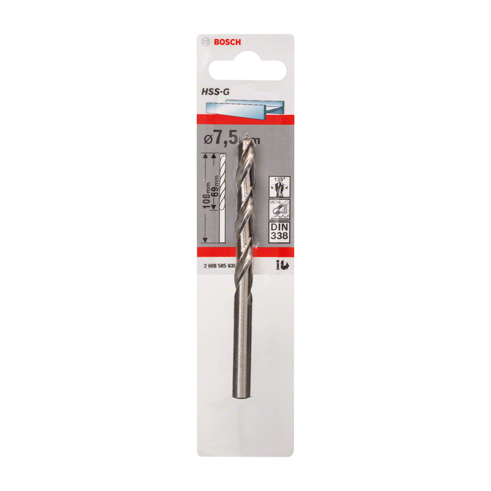 1 db Bosch HSS-G fémfúró 7,5 x 69 x 109 mm