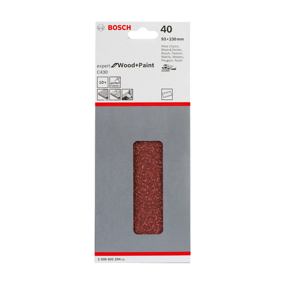 Bosch EXPERT C430 csiszolópapír rezgőcsiszolókhoz, fa és festék, 93x230 mm, P40, 8 lyuk, 10db