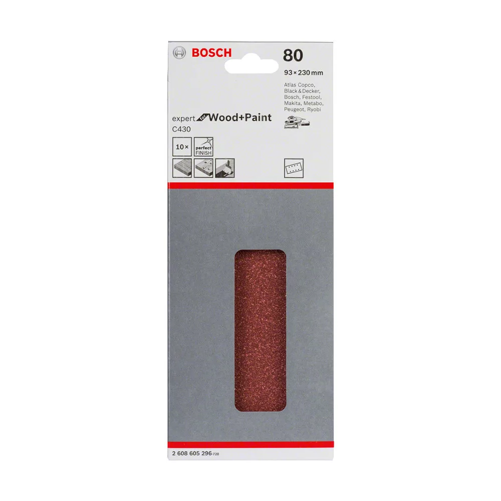 Bosch EXPERT C430 csiszolópapír rezgőcsiszolókhoz, fa és festék, 93x230 mm, P80, 8 lyuk, 10db