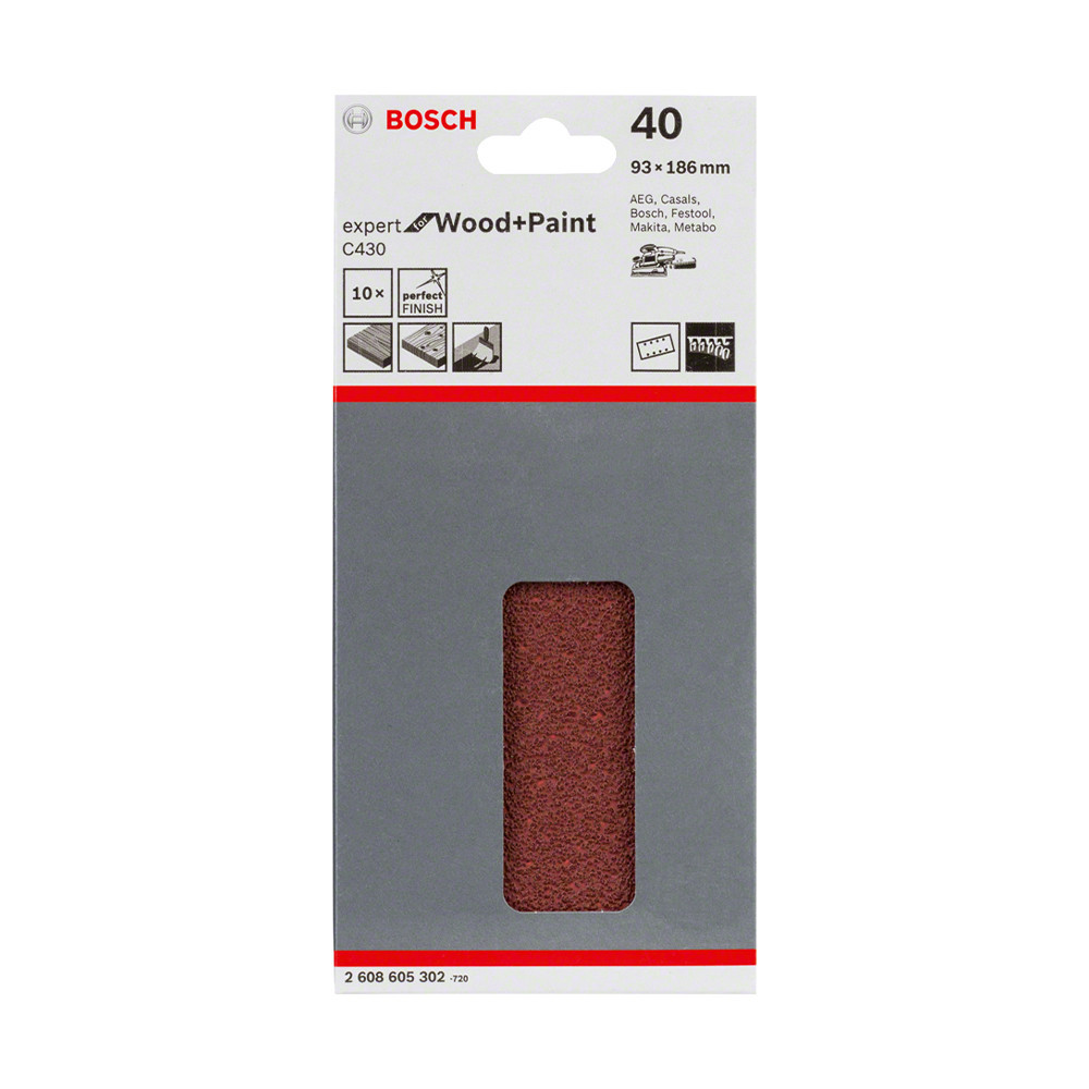 Bosch EXPERT C430 csiszolópapír rezgőcsiszolókhoz, fa és festék, 93x186 mm, G40, 8 lyuk, 10db