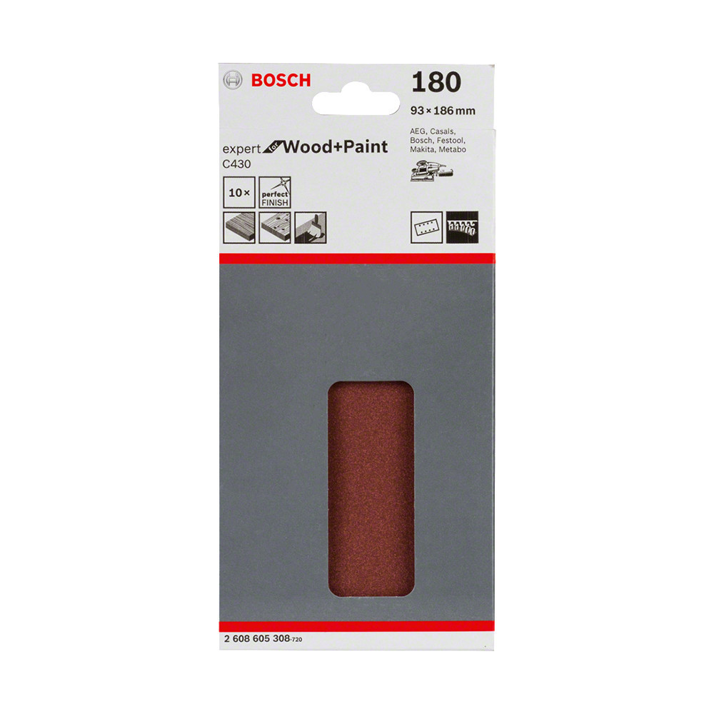 Bosch EXPERT C430 csiszolópapír rezgőcsiszolókhoz, fa és festék, 93x186 mm, G180, 8 lyuk, 10db