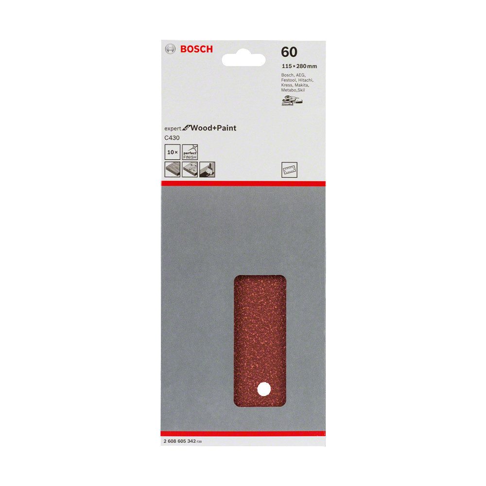 Bosch EXPERT C430 csiszolópapír rezgőcsiszolókhoz, fa és festék, 115x280 mm, G60, 10db
