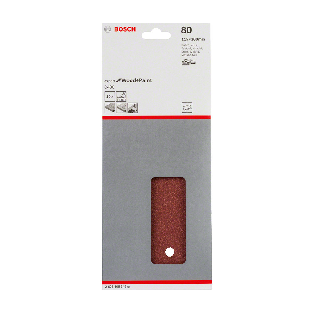 Bosch EXPERT C430 csiszolópapír rezgőcsiszolókhoz, fa és festék, 115x280 mm, G80, 10db