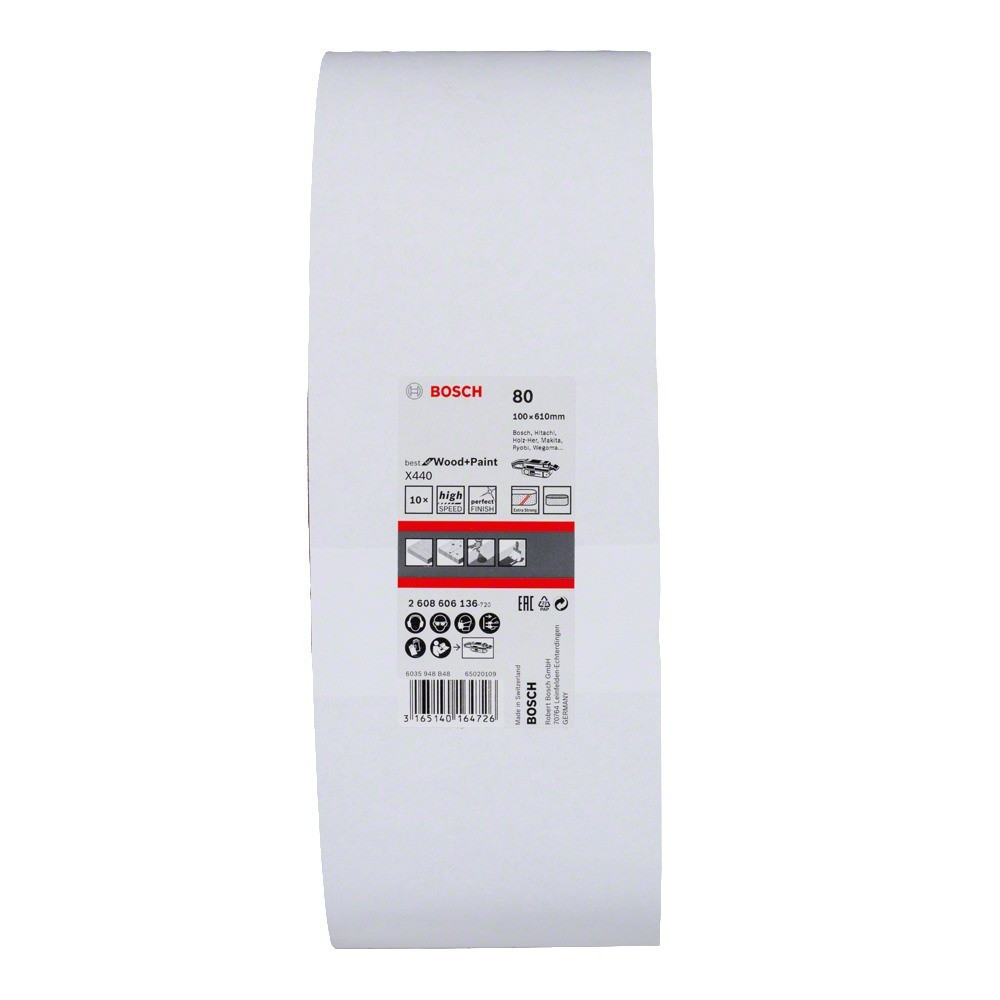 Bosch PRO X440 csiszolószalag, 100x610 mm, G80 3 db, keményfa, tömörfa, festék 10 db